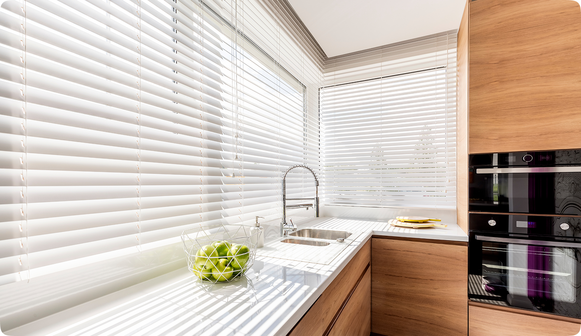 Горизонтальные жалюзи обеспечивают комфорт и регулирует уровень освещённости в помещении. Они состоят из горизонтальных ламелей, которые можно поворачивать на 90 градусов, регулируя количество света, проникающего в комнату.